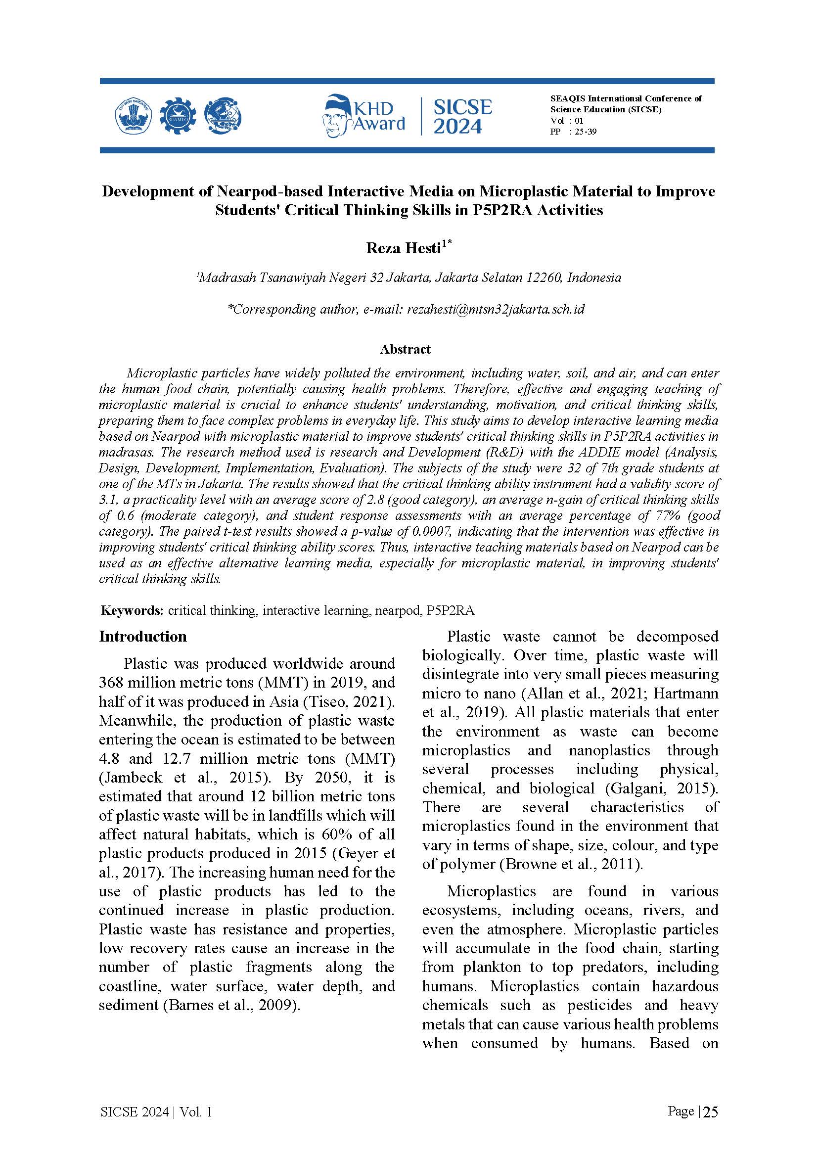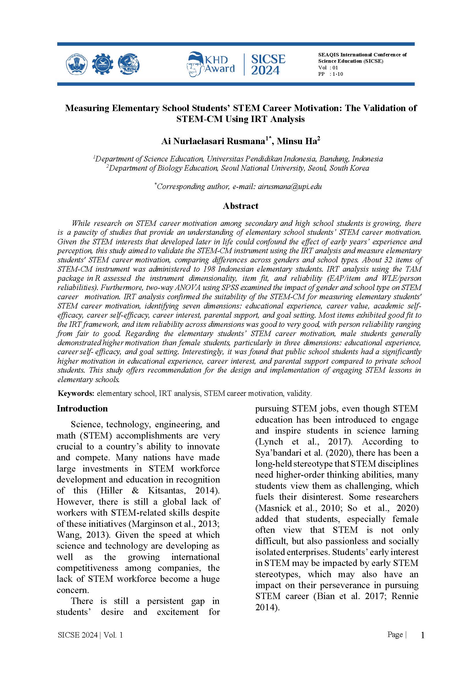 Selected paper will be published on SEAQIS Journal of Science Education (SciEd) indexed by DOAJ, Dimension, Google Scholar, Index Copernicus International, and Garuda.
